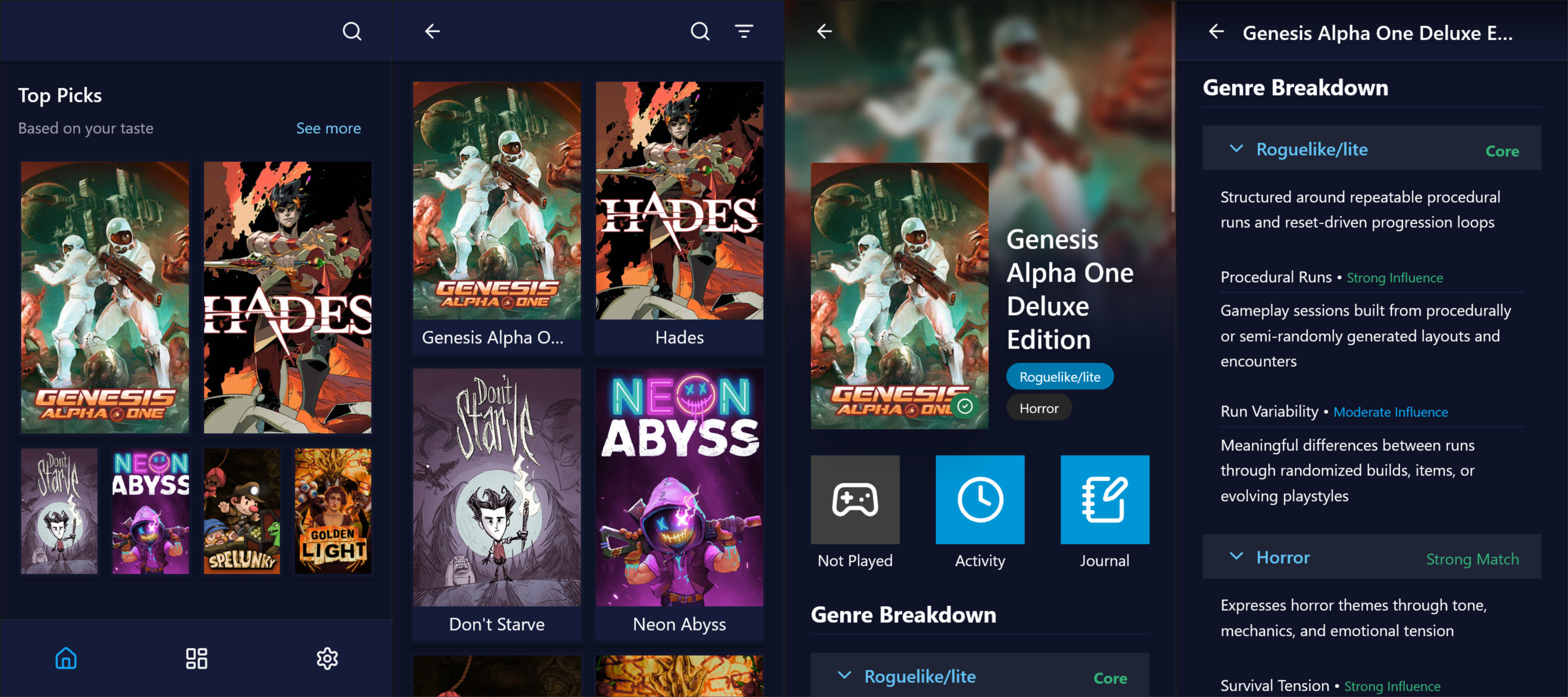PlayAtlas builds on top of that foundation, introducing a deterministic, multi-dimensional classification engine that transforms a static library into a structured space of explainable genre intensity and structural patterns.
